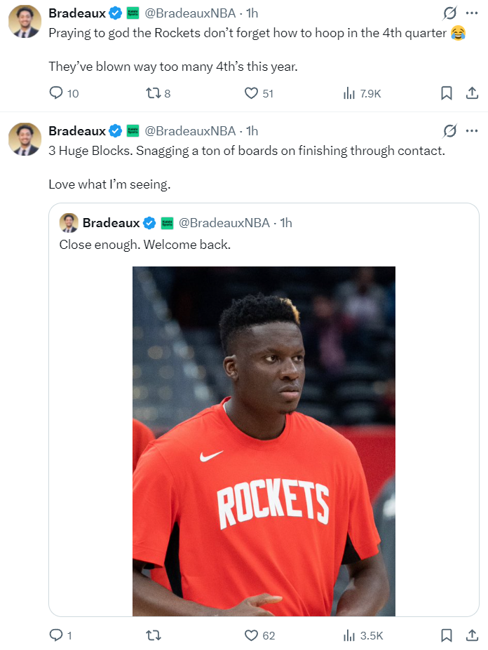 火箭记者也盛赞乌度卡激活了卡佩拉,在申京状态不佳的时间段,卡佩拉提升了战术地位尤其是第三节他打了足足7分钟拿到2分2篮板1助攻1抢断2盖帽的数据,全场比赛16分钟拿到5分9篮板1助攻1抢断3盖帽。