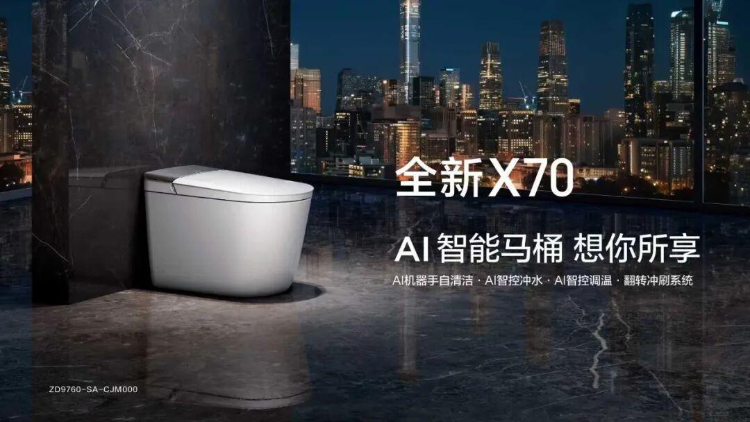 以九牧X70行业首款AI智能马桶为例,它便是九牧 AI卫浴的具象化呈现。这款产品将AI化为看不见的贴心管家,以无感式主动服务,悄然重塑每一日的卫浴时光。